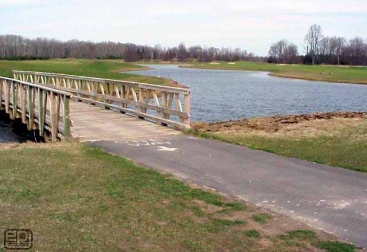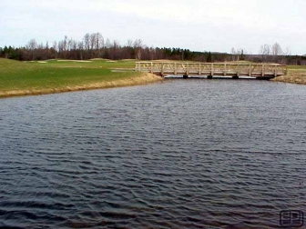 In addition, a smaller two acre pond was lined along the eighteenth hole on the opposite side of the Maple River, which cuts through the center of this unique 18 hole course. Sealing around the wooden supporting structure of the cart bridge provided some interesting challenges. The flexibility of PVC allowed for field fabricated boots to seal the liner to the wood pilings.
